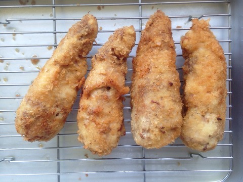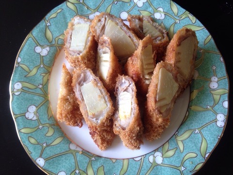 穂先は豚肉を巻いてフライにしました。
