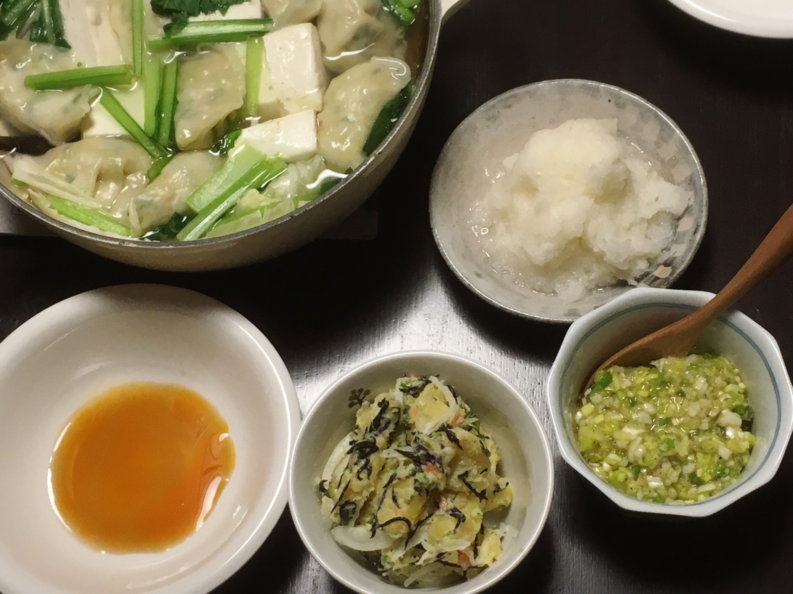 1位 湯豆腐に餃子を入れた鍋