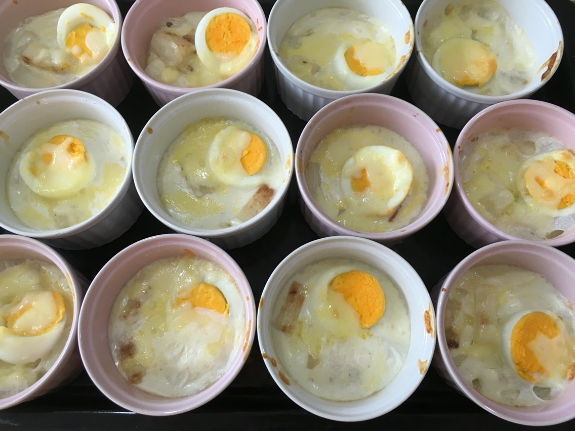 薄力粉をからめて、牛乳を入れて煮込み、フライパンのままホワイトソースまで完成します。