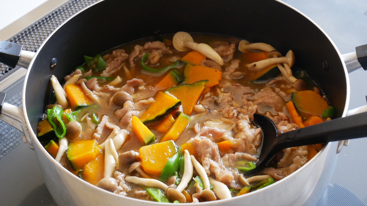 カボチャと豚肉を合わせた1品料理です。シンプルな和風味がホッとします。 …