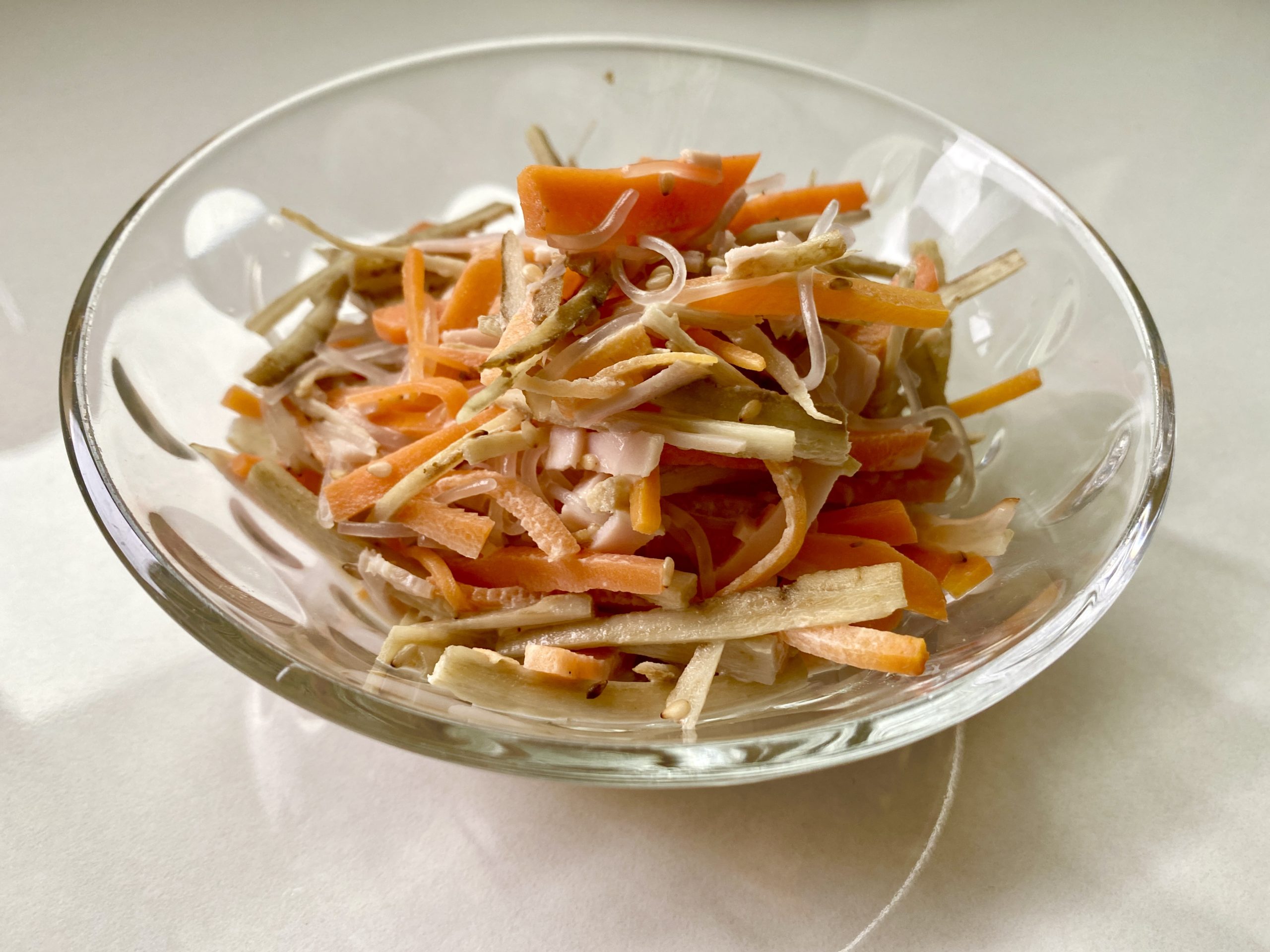 定番のごぼうサラダに春雨を加えた一品です。ツルッとした口当たりで食べや …