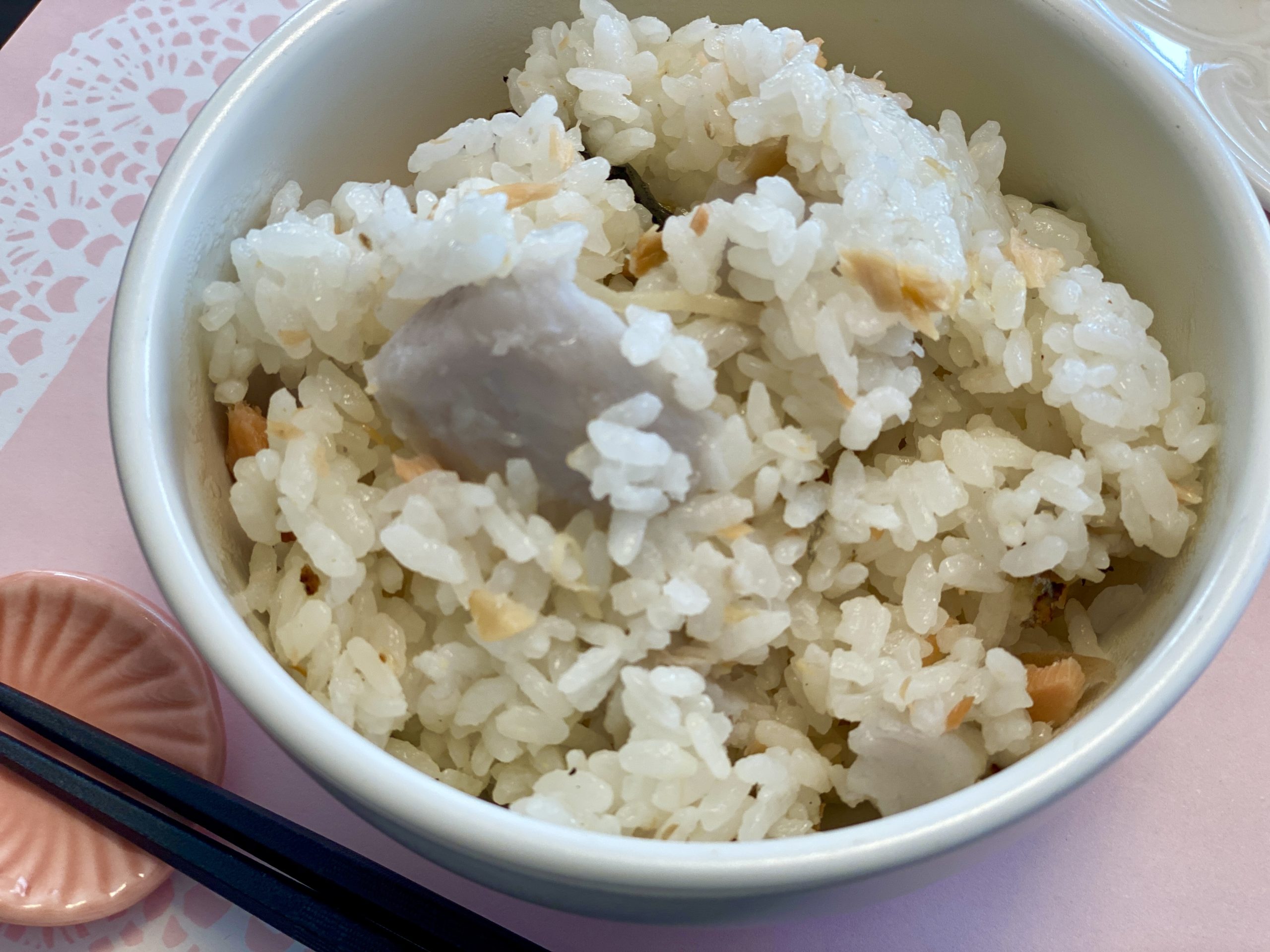 角切りの里芋と焼鮭を炊き込んだご飯です。シンプルですが具沢山で美味しい …
