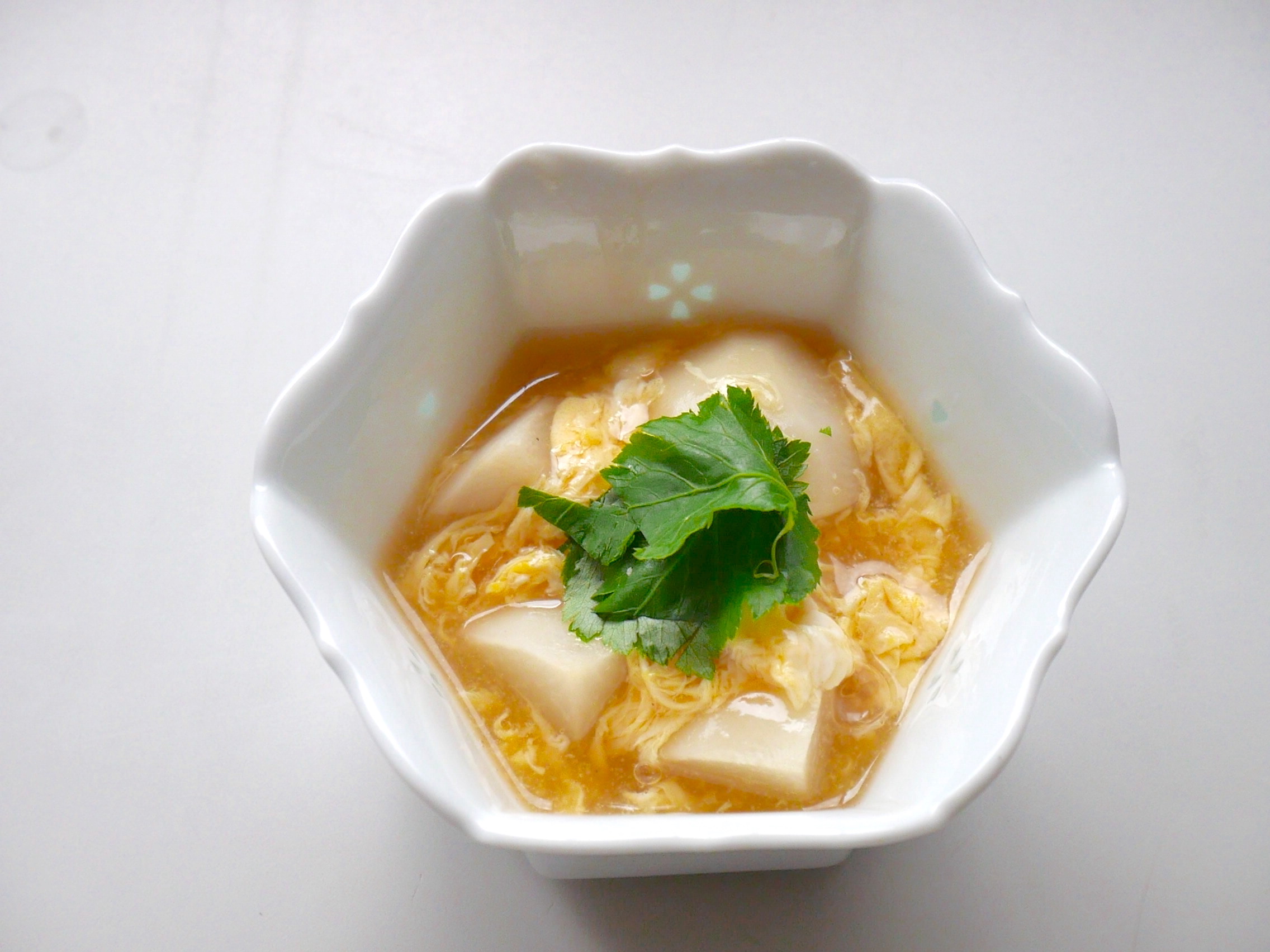 サトイモにかき卵のあんをかけた1品です。優しい味でサトイモの美味しさが …