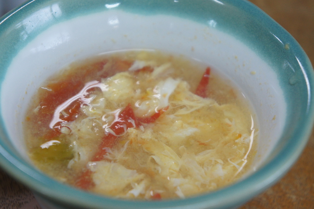 ③卵に砂糖を加えて混ぜ、油を敷いたフライパンで炒り卵を作ります。