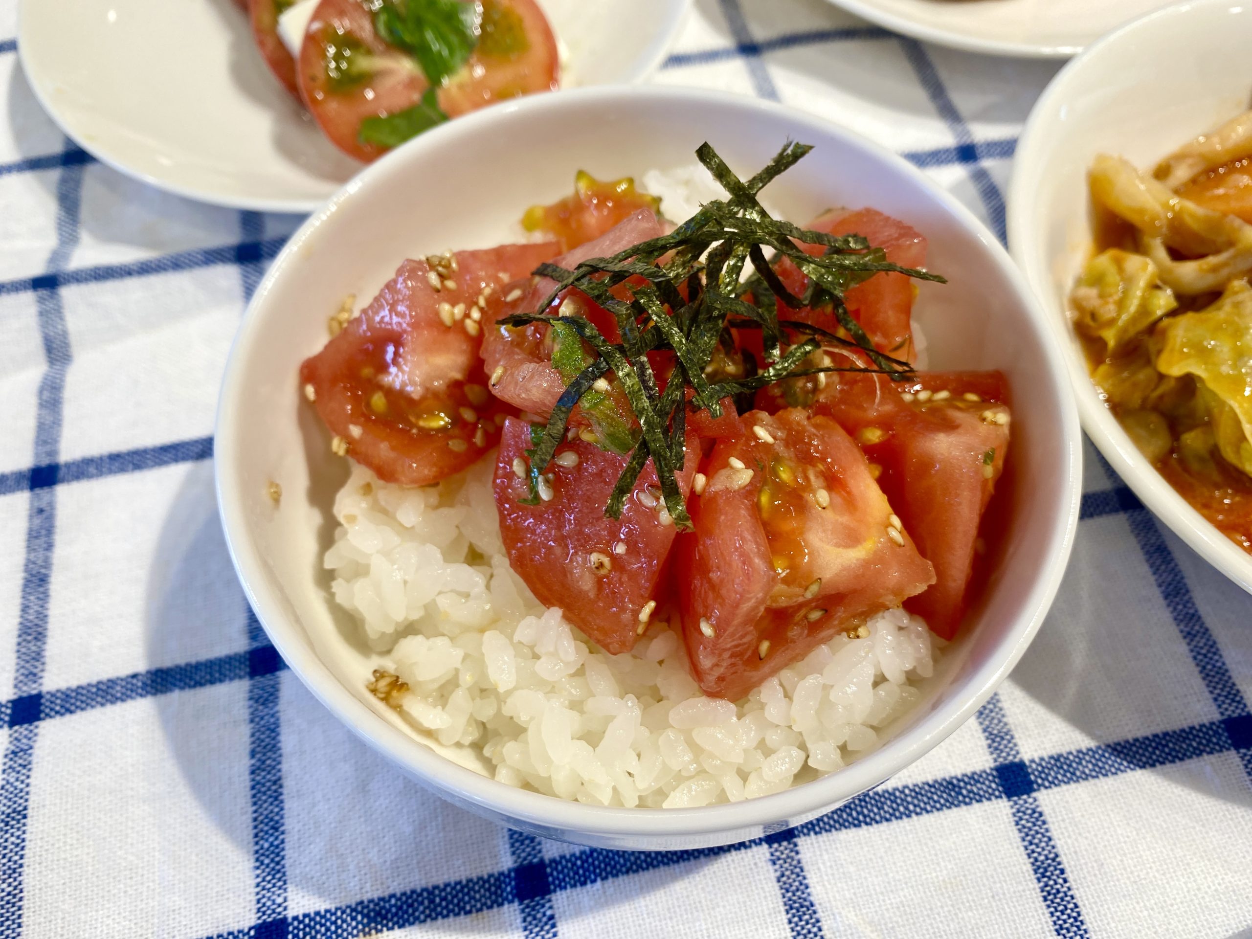 蒸し焼きにしたナスと生のトマトを中華風のタレにつけた1品です。食欲のな …
