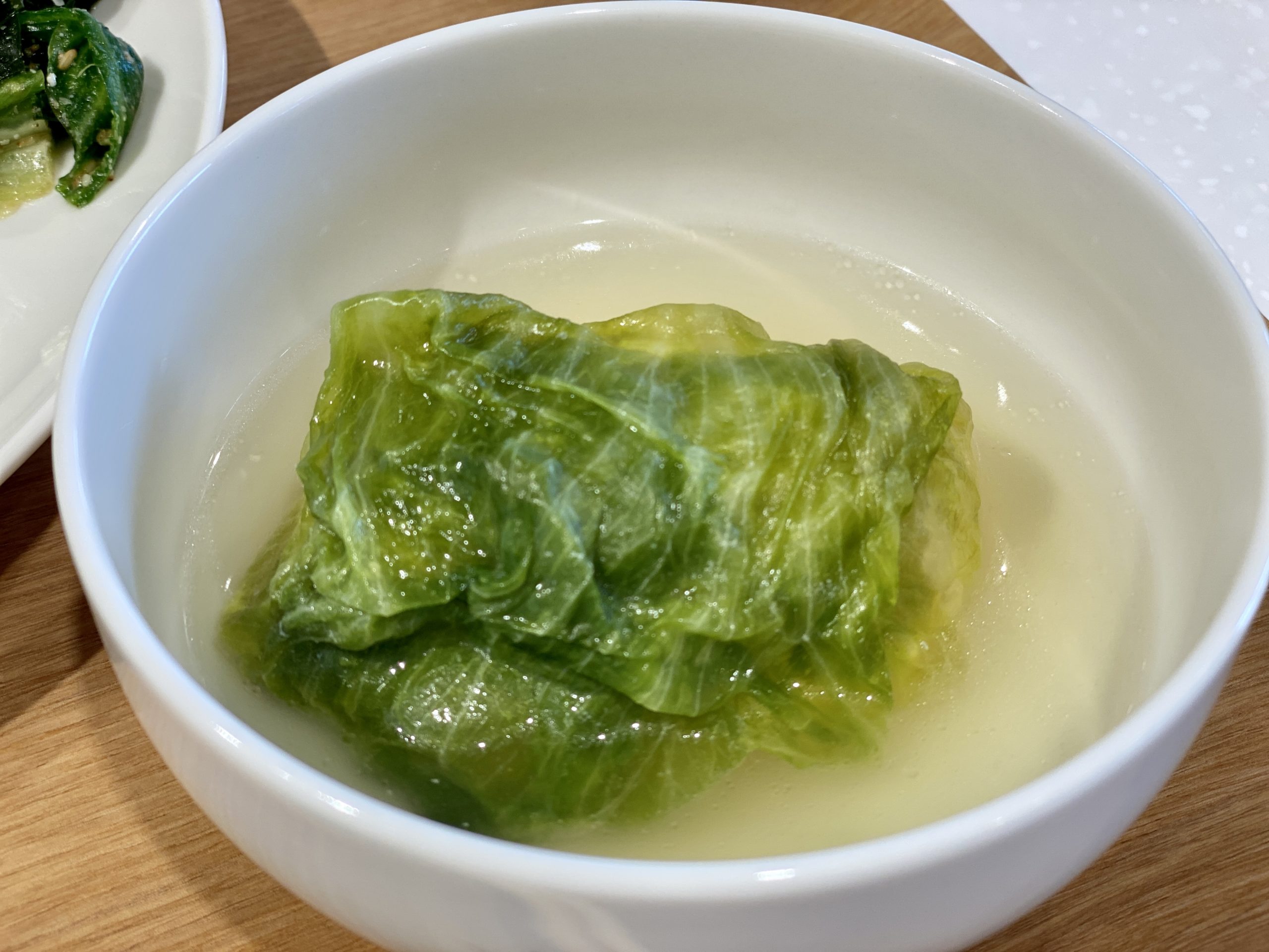 豆腐のレタス巻き 湯通ししたレタスで包んだ絹豆腐をピリ辛の特製ダレをか …